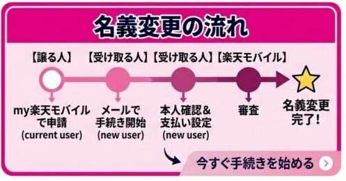 - 受け取る人(新しい契約者): 自身の「楽天IDとパスワード」、本人確認書類(マイナンバーカードや運転免許証など)、新しい支払い情報(本人名義のクレジットカードや銀行口座)を用意。